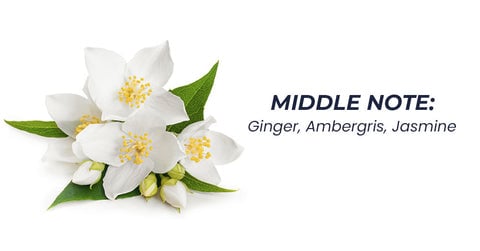 Middle Note: Ginger, Ambergris, Jasmine